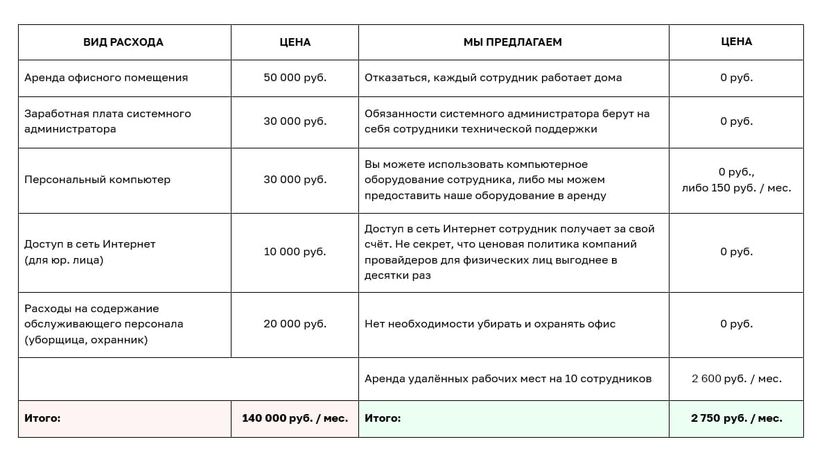 Посмотрите сравнительную таблицу из расчёта содержания фирмы на 10-15 человек: