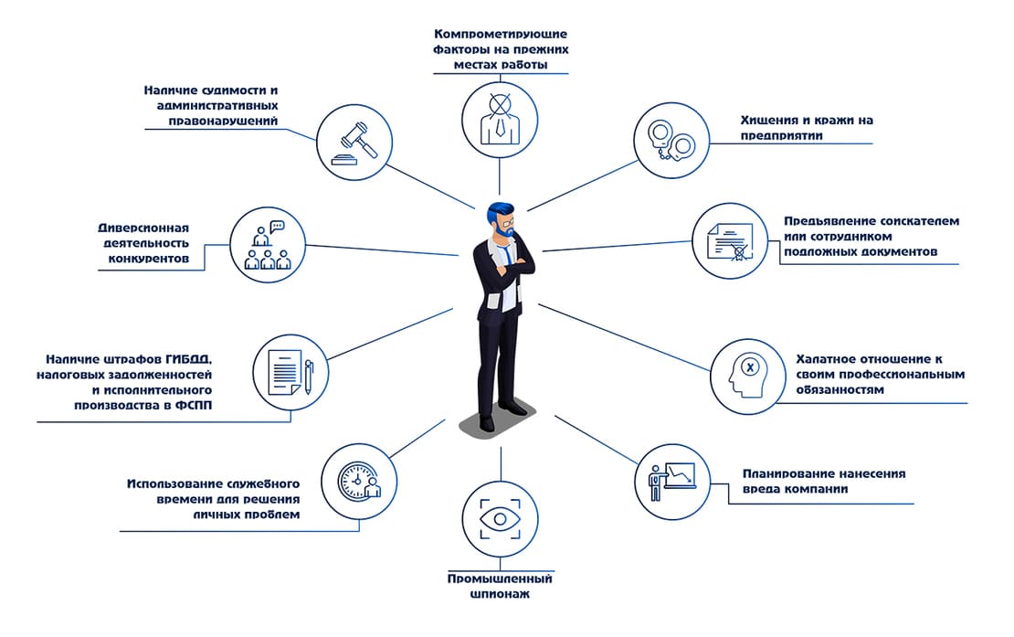 Поэтому проверка соискателей и персонала – привычное явление для работодателя, который стремится обезопасить своё дело. Данная услуга позволит Вам решить проблему подбора квалифицированных кадров и предотвратить инциденты, связанные с деятельностью неблагонадёжных сотрудников.